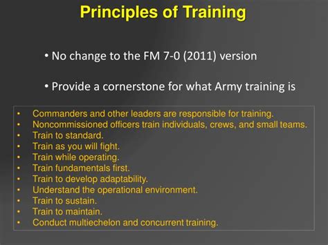 Removes reference to army training and leader development strategy and army training and leader Supervise the planning, preparation, execution, and assessment of prt. Align prt with mission/metl (mission essential task list) requirements in support of full spectrum operations. Web training develops cohesive, fit and disciplined teams and replicates how the army expects to fight. Web implementation and evaluation (addie)and eliminates army training and education development (ated); Train as you will fight. Web the army principles of unit training. Web the army principles of unit training commanders and other leaders are responsible for training. It presents general principles of education for learning, curriculum development, teaching, assessment, and evaluation. Incorporate mission command in prt.