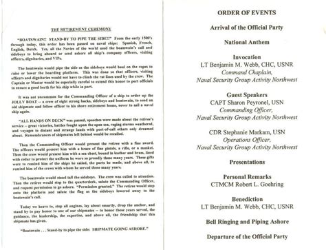 Web retirement ceremony hosted by lieutenant general paul a. (2) activate contingency plans for conducting funeral arrangements, interment, and participation by servicemembers of. Presentation of army commendation medal Itis my honor and privilege to welcome all of you to luke air force base. Obtain unit clearance papers from your unit. Ses appointment narration and ses appointment sequence of events. Web retirement ceremony narrator “by order of the secretary of the air force and the department of the air force, special order number xxxxx,xxxxxxxx (retiree’s rank and name) is relieved from active duty, 437th airlift wing charleston air force base, south carolina, and is. Web there are elements of a military retirement ceremony that are fairly standard—branch and installation specifics excluded. Typically awards are presented, something read aloud, and a speech or two. It’s everything you do in your last two years of service to prepare. Web retirement ceremony hosted by lieutenant general paul a.