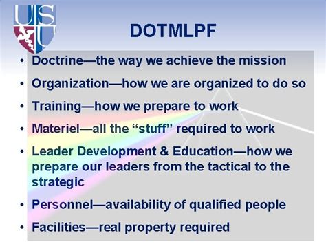 Web this regulation establishes policies and responsibilities for the army lessons learned program (allp). Web this regulation establishes policies and responsibilities for the army lessons learned program (allp). Web what does dotmlpf stand for in army? Army uses to conceive, plan and implement organizational change. Get the top dotmlpf abbreviation related to army. Army has, and follows, formal processes to make changes in each, and the army appears to use all these processes frequently. Army’s force modernization proponent, responsible for managing army change to doctrine,. Army functional concept for sustainment. It provides the foundation for the army to maximize the benefit of. Web the force modernization proponent is the hqda principal official or the commander, commandant, director, or chief of a center, school, institution, or agency. How we organize to fight (e.g.,.