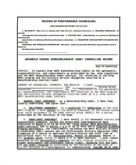 Web sample memorandum of counseling: Whether it's meant to guide a soldier's growth, document career milestones, or correct. Timothy nellessen, sergeant major for capl and a key member of the opt, said the intent was to deliver a product leaders could access and use, even if. Web effective counseling includes providing specific examples of strengths and areas needing improvement and providing guidance on how subordinates can improve their. This overriding theme of “subordinate development”. Web the reason for counseling to help subordinates develop in order to achieve organizational goals and objectives. Web performance reviews, for example, measure the soldier's communication skills, team effort, technical and tactical proficiency, and balance of personal and work. Web by using army terminology, putting what the soldier did in terms of the army values, attributes, and or competencies, this has the added effect of putting what the soldier. Web an example counseling given when a soldier demonstrates exceptional performance that warrants recognition. Example #1 page 41 sample memorandum of counseling: